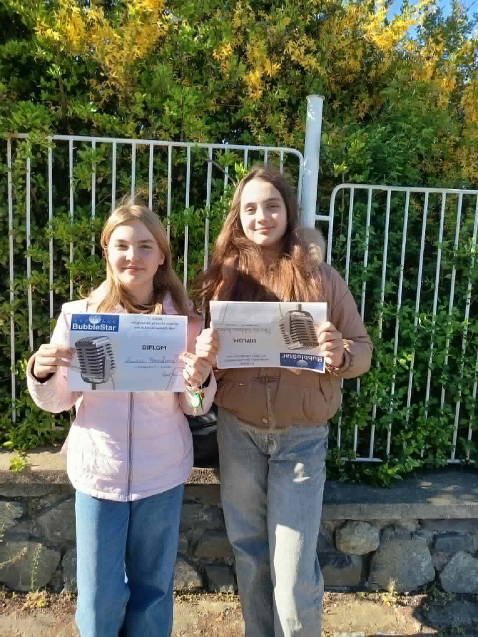 Dne 23.4.2026 se zúčastnili naše žákyně ze šesté třídy Marta Viktoria Š. a Zuzana N. pěvecké soutěže,, Bublestar „.Z padesáti tří účastníků obhájili 16 a 17 místo. Děkujeme za reprezentaci naší školy ZŠ U Krčského lesa.