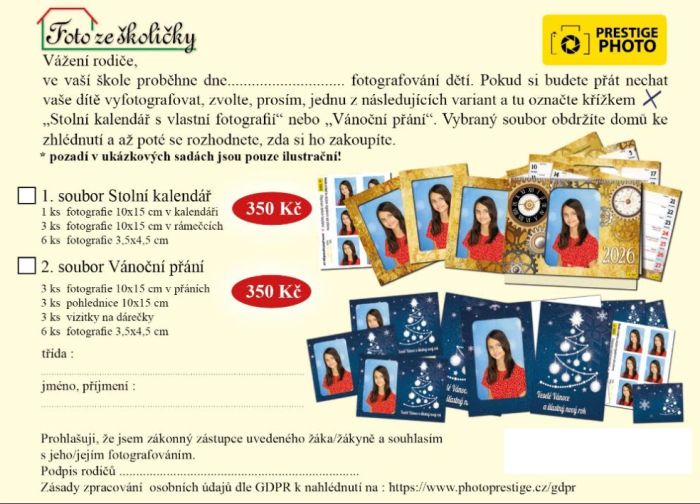 Děti dostaly níže uvedený letáček, který by měly v případě zájmu o jednu ze sad odevzdat před focením.
